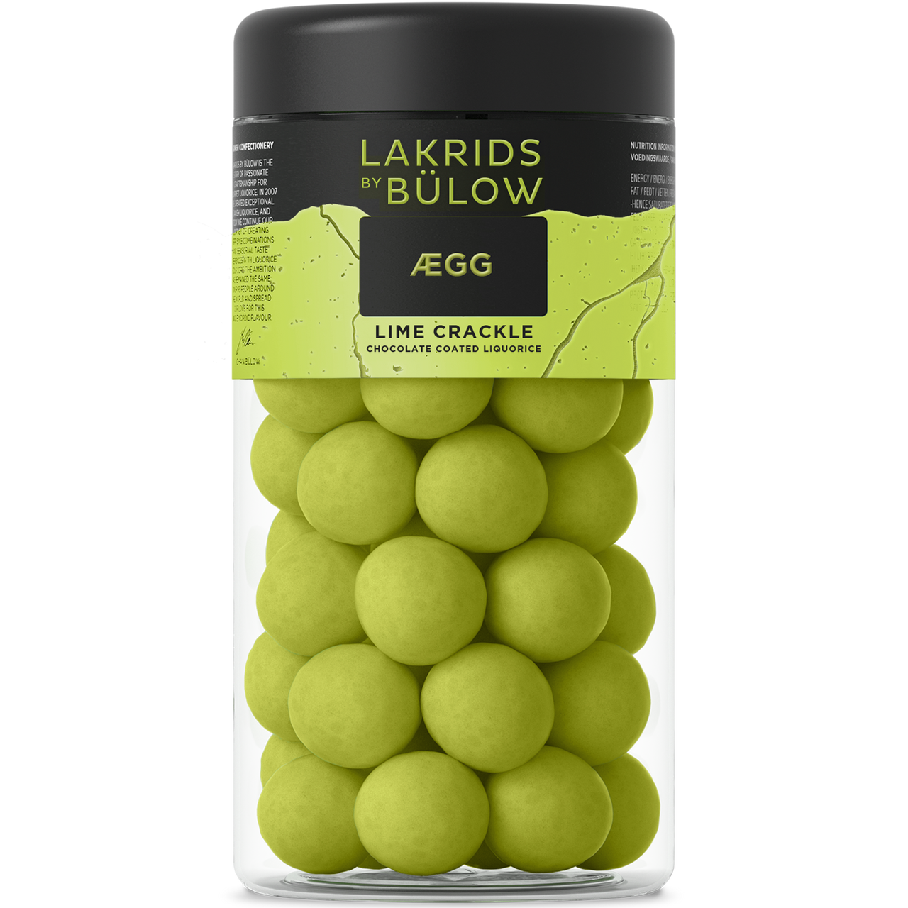 LIME CRACKLE kombinerar syrlig lime och frisk citron med krämig vit choklad, en salt lakritskärna och ett krispigt grönt sockeröverdrag. En sprudlande fusion av sötma och citrussting med ett härligt crunch - som får smaklökarna att längta efter mer.